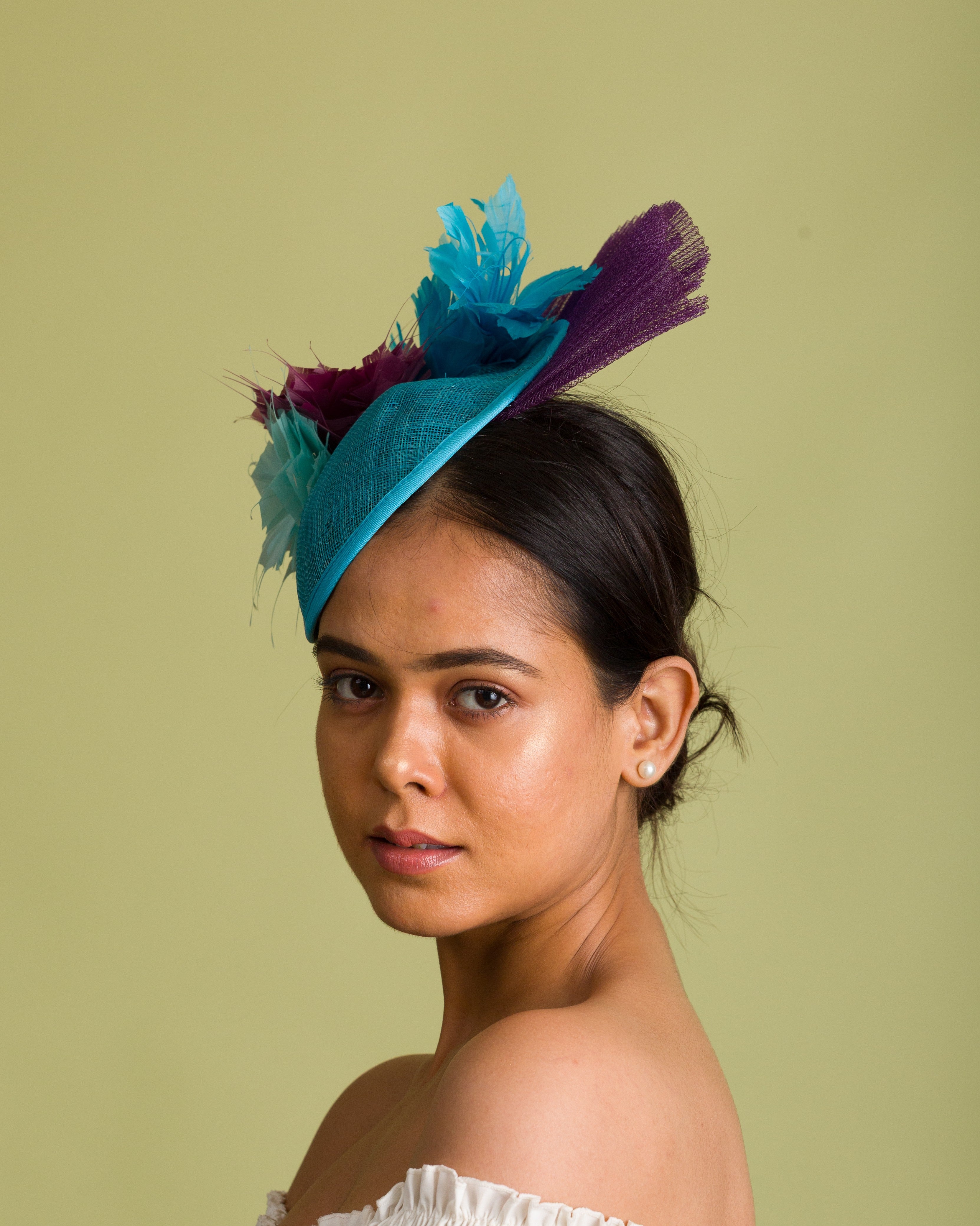This classic style and color combination creates a fashionable and sophisticated headpiece to elevate the overall look styled for various occasions, such as formal events or stylish semi informal outings. This is a special piece part of our derby collection.