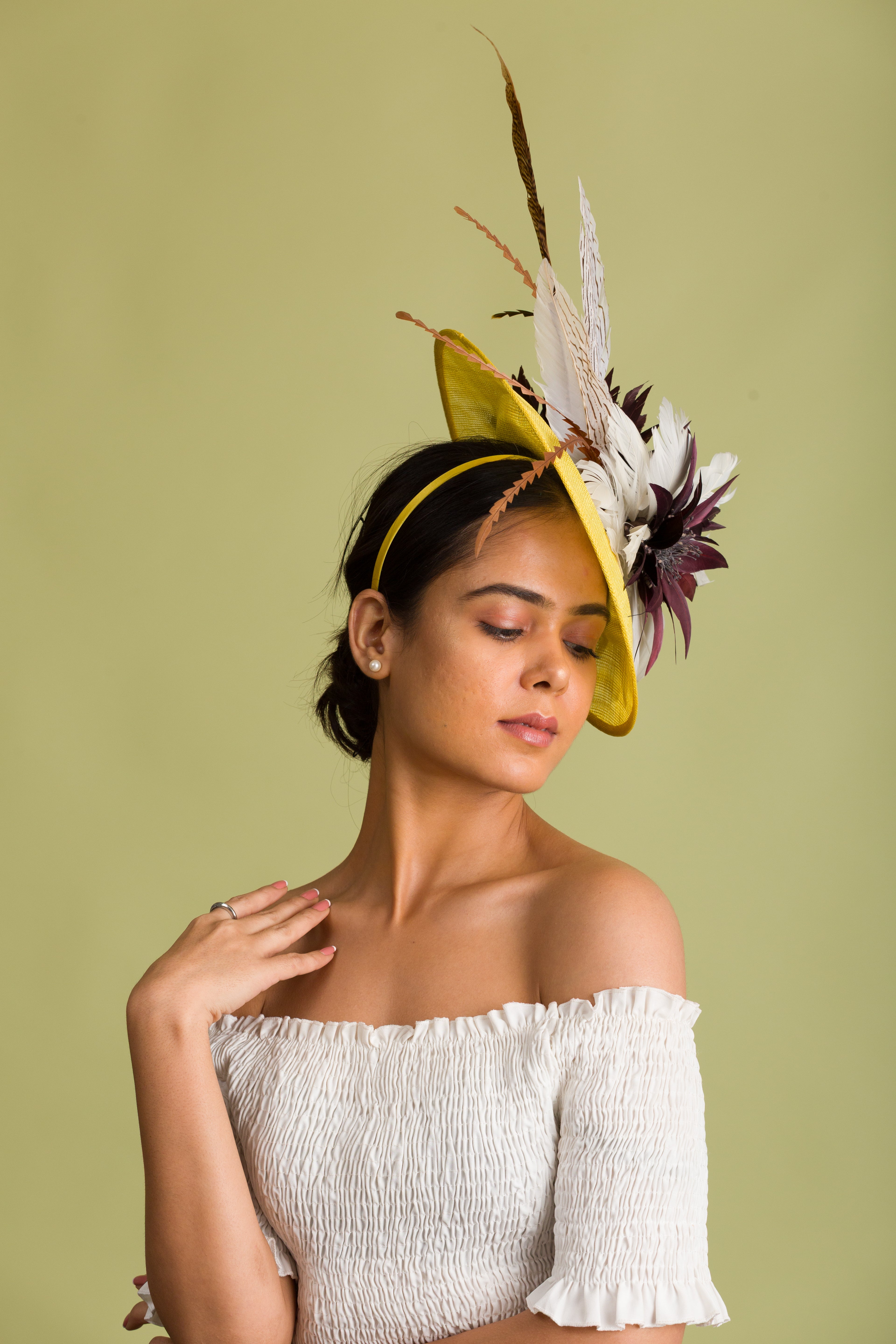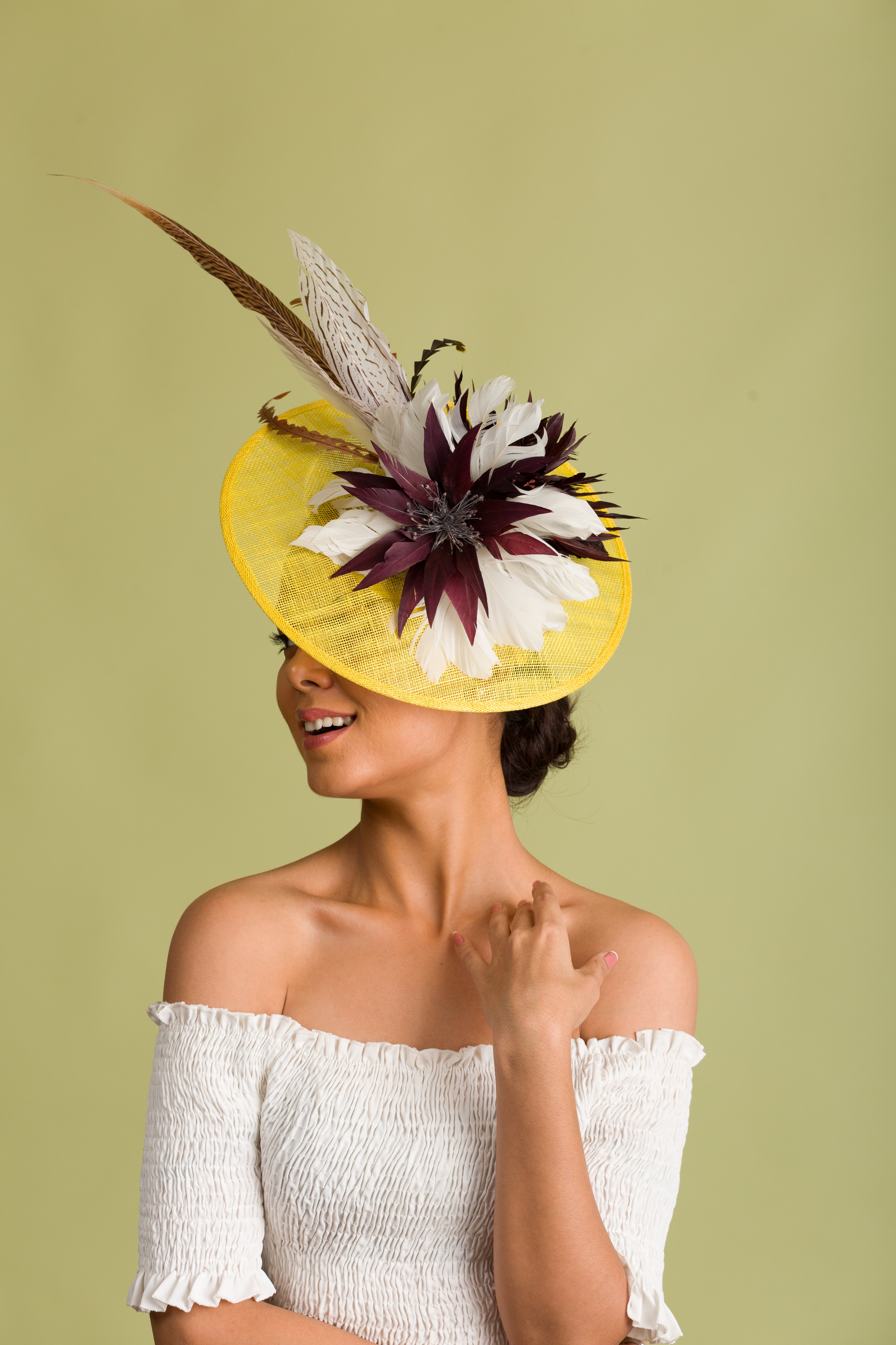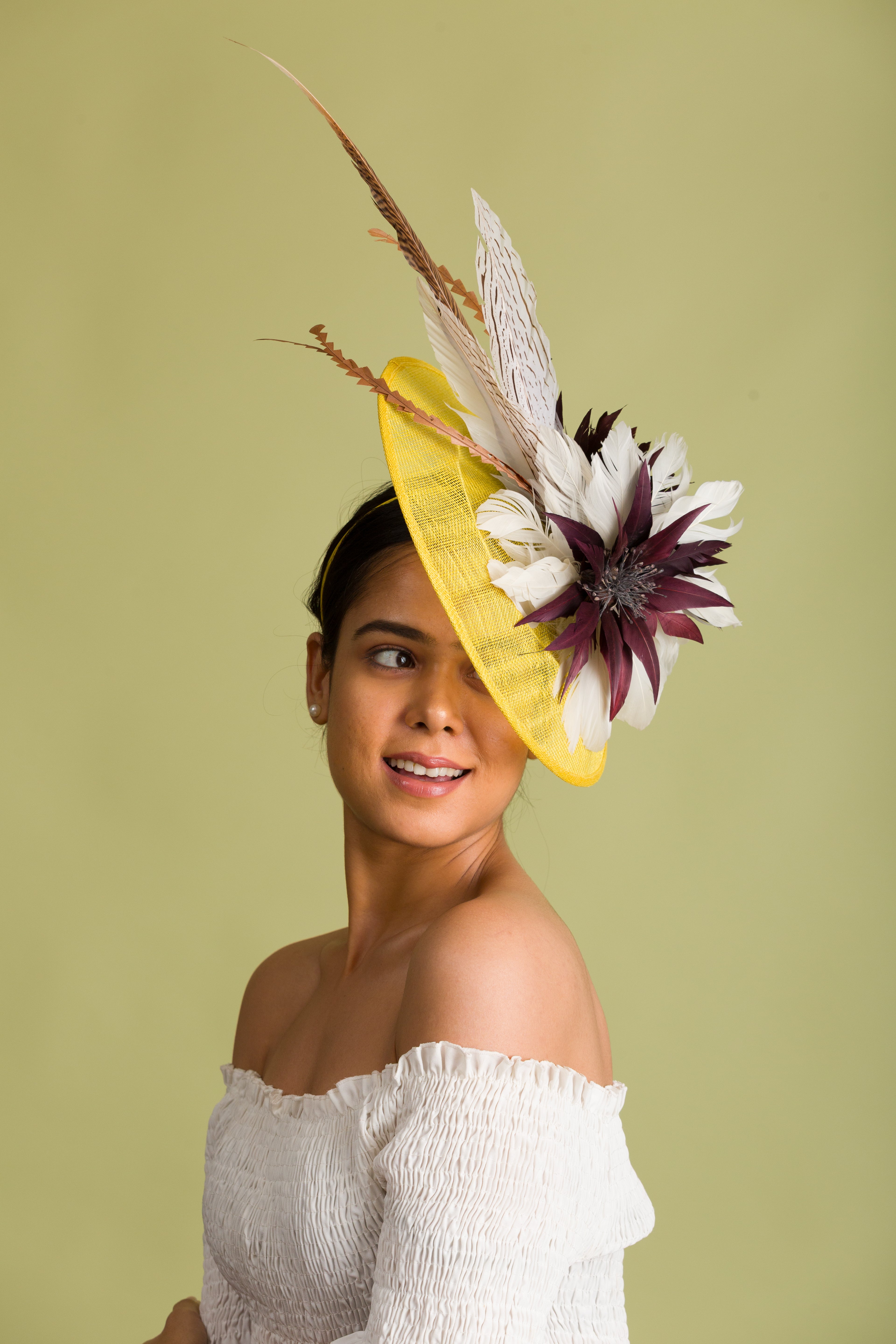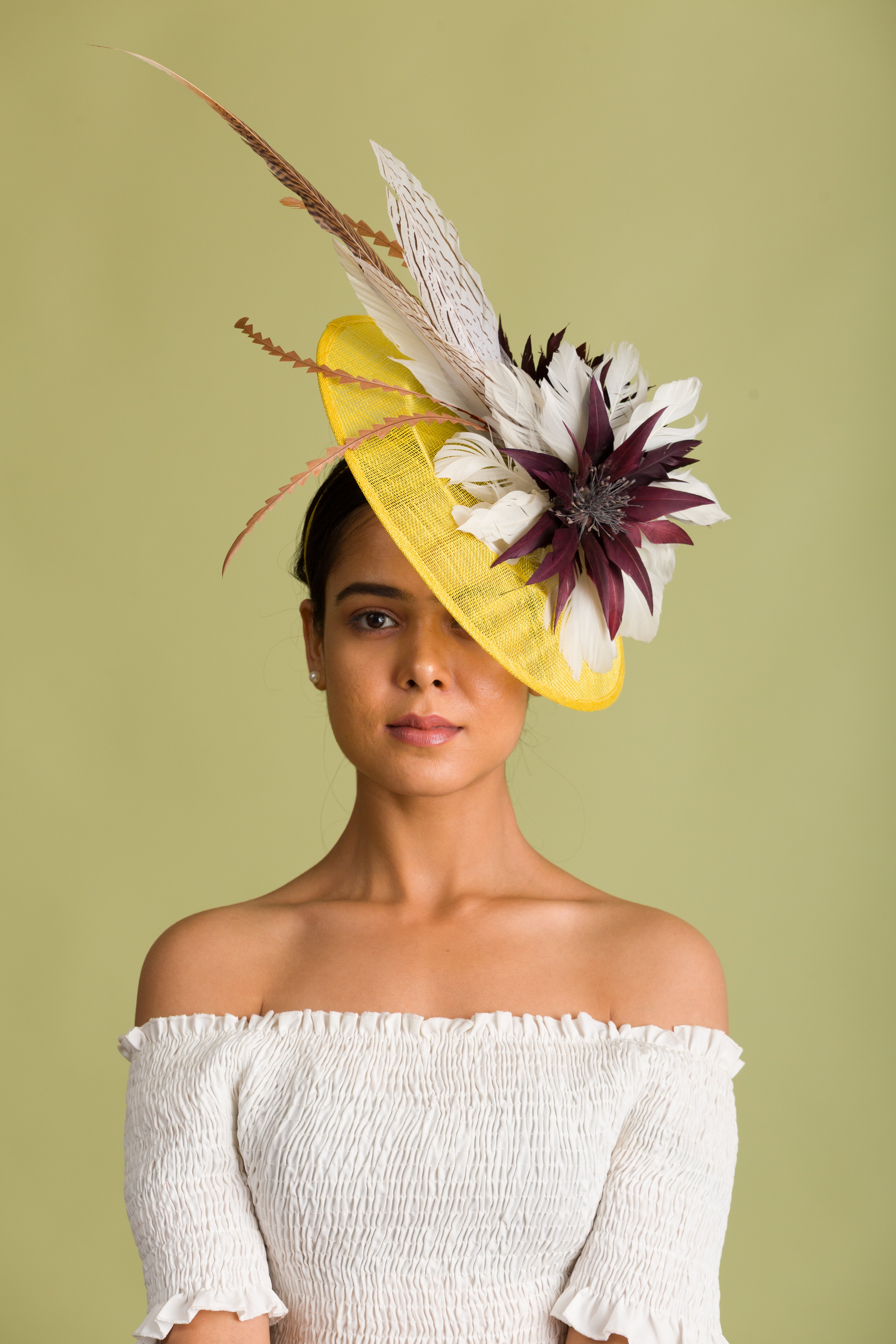 This fascinator is versatile to be styled with any dress from solid colored to floral or any other patterned dress. The fascinator is simple yet is a statement piece balancing out your overall ensemble. It is an ideal high fashion luxury women accessory to make a statement during semi formal events or make someone feel special with one a kind luxury gift.