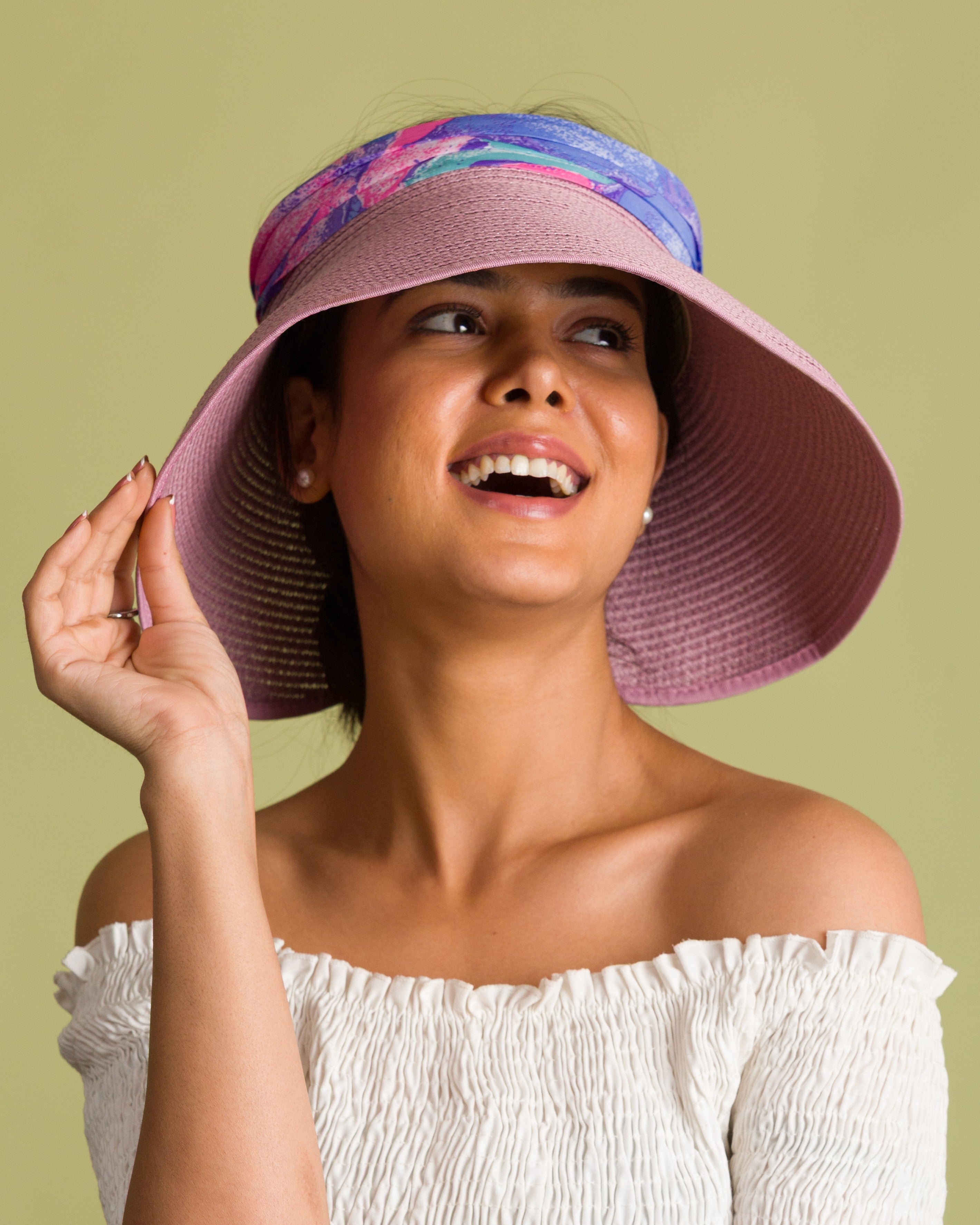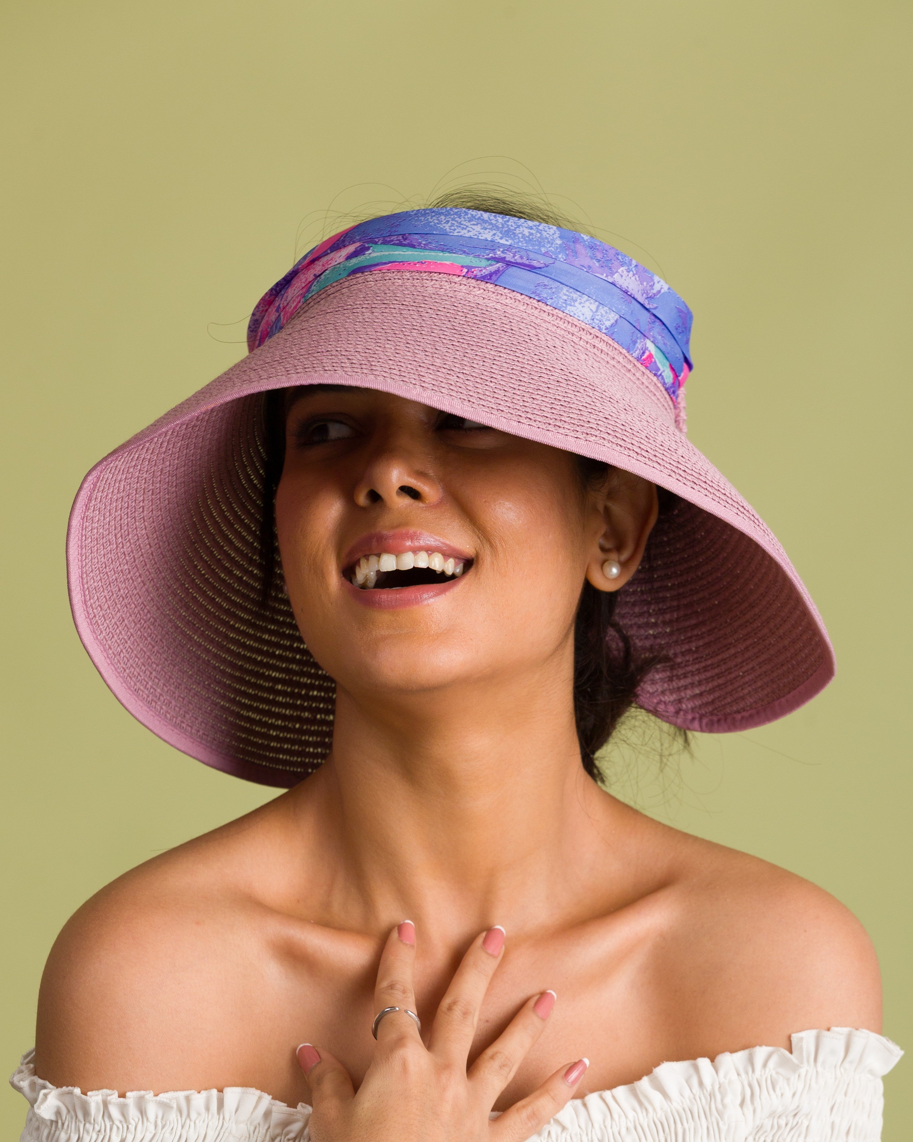 Flaunt your perfect fit with this purple lilac sun visor with colour pop of silk band. Being minimalist in design, it provides style and elegance.